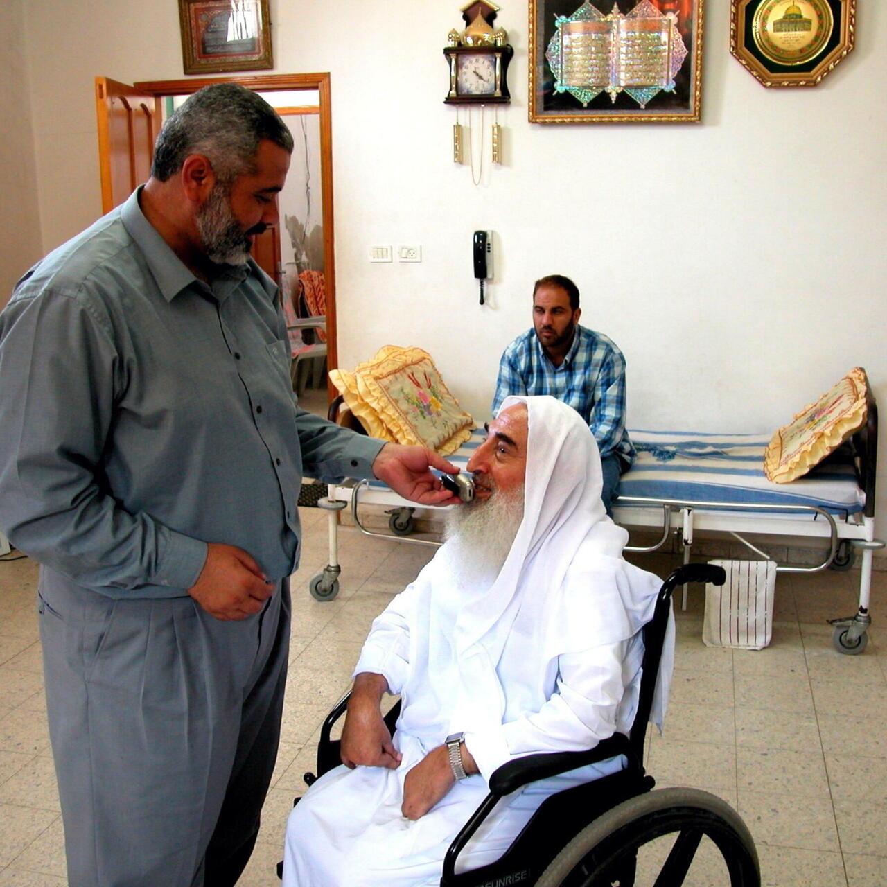 2003年末には、ハニーヤ氏はヤースィーン氏が信頼する助手の1人となっており、ガザ地区にあるヤースィーン氏の自宅でハニーヤ氏が、ほぼ完全な麻痺を負ったハマース創設者(ヤースィーン氏) が会話できるように、彼の耳もとに電話を寄せているところが撮影されている。そして2004年にイスラエルはヤーシーン氏を暗殺した。