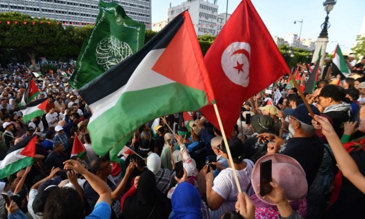 米国大使館の包囲は「パレスチナのための共同行動調整委員会」と「正常化システムへの対抗のためのチュニジアネットワーク」の呼びかけのもとに始動し、主催者らによれば複数日にわたって継続されるという。