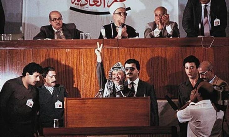 1988年11月15日、アルジェリアは首都アルジェの人民宮殿でパレスチナ民族評議会の第9回会合を主催し、その際、(パレスチナ解放機構の)故ヤースィル・アラファート議長がパレスチナ国家の樹立を宣言した。