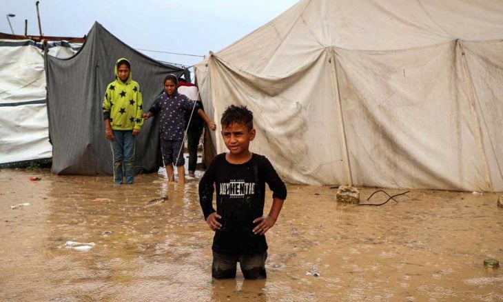 豪雨はハーン・ユーニス西部のマワースィー地区で多くのテントを浸水させた。さらにガザ市のいくつかの地域や、地区中央部で、豪雨によってできた水たまりが避難民のテントの中へと流れ込み、内容物を損傷させた。