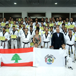 試験では実技と筆記があり、ジョルジ・ザイダーン事務局長と連盟員の出席のもと、レバノンテコンドー連盟のカーリーン・ラッフード(エミール・ラッフード前大統領の子)会長が、合格者の男女に免許状を出した。