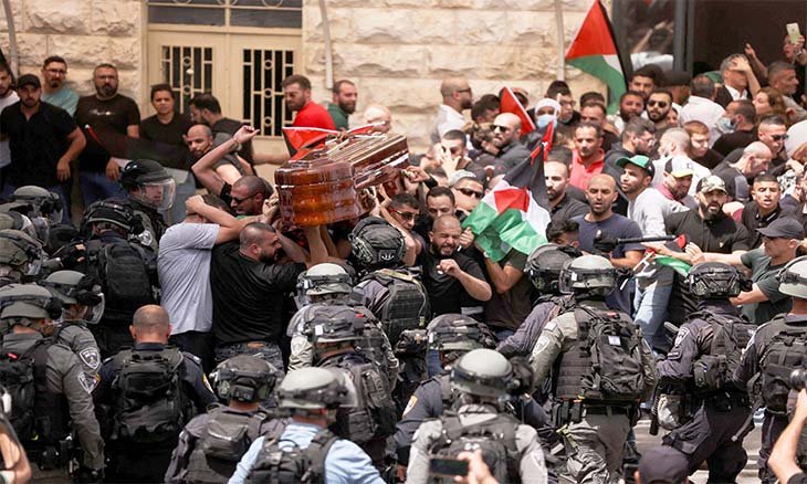昨日金曜日、東エルサレムの数千人のパレスチナ人は、先週水曜日にイスラエル占領軍の銃弾によって殉教したジャーナリスト、シーリーン・アブー・アークラ氏の葬儀に参列した。一方イスラエル警察は参列者たちが複数の条件に従うことを拒否したため、彼らを攻撃した。