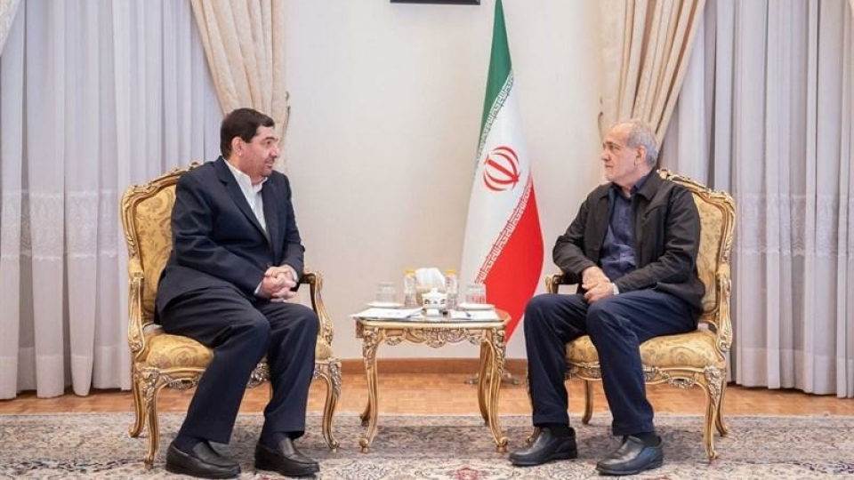 【イラン・オンライン政治部】モハンマド・モフベル大統領代行は、本日(7月7日(日))朝、次期大統領の事務所を訪れ、面会の中で最近の行政課題の情況および国の現在の業務について報告を行った。