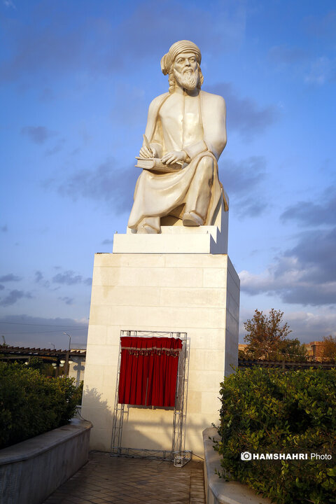 【ハムシャフリー電子版】モウラーナー[ジャラールッディーン・ルーミー]像は、テヘラン市議会議長のメフディー・チャムラーン氏、副大統領兼管理計画庁[計画予算庁]長官[セイエド・ハミード・プールモハンマディー氏]、テヘラン駐在トルコ大使、数名の市や文化関連の局長や幹部ら、及びわが国の彫刻家ガシュガーイー氏の立ち合いのもとで、月曜日にモハンマディーエ広場でお披露目された。