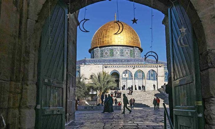 アクサー・モスクは「モリヤ山」と呼ばれる小さな台地の上に位置しており、岩のドームは同地の最高地点かつ中心にある。