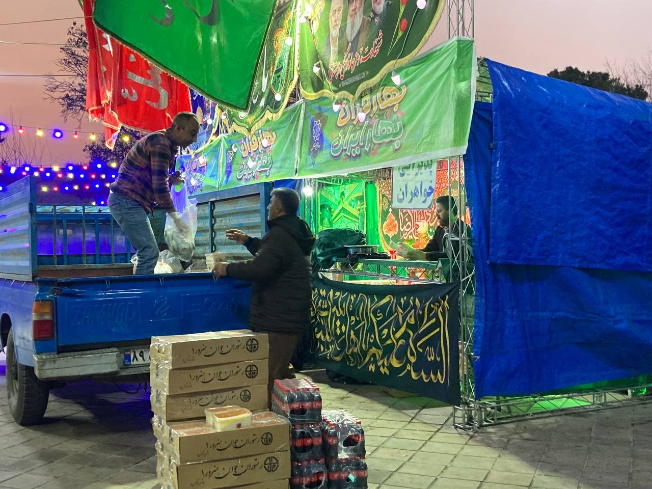 イフタールの食卓で余ったものも、日産車のリアコンパートメントから「クルアーンの春、イランの春」の食事配布所に運ばれる。日が暮れると、文化会館敷地内のスピーカーからアザーンの声が聞こえてくる。断食中の通行人が次々と近づいてくる。スタッフたちは使い捨てのコップやエステカーン[ティーグラス]に淹れたてのシナモンティーを注ぐ。「神様に受け入れられましょう、お兄さん…神様に受け入れられましょう、お姉さん…」聞こえるのは、真実の言葉の受け入れと祈りの言葉である。この食事配布所はイフタールとノウルーズの期間中、毎晩18時30分から23時まで開設されている。