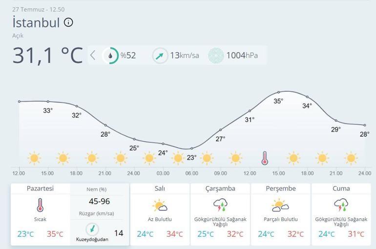 全国的に季節の平均を上回る気温が続いている。イスタンブルを含む多くの県に朗報がもたらされた。蒸し暑い天候は、週の半ばには激しい雨に変わる。一方、気象総局の今日の天気予報では、2つの県に対して雷を伴う激しい雨に注意するよう呼びかけている。