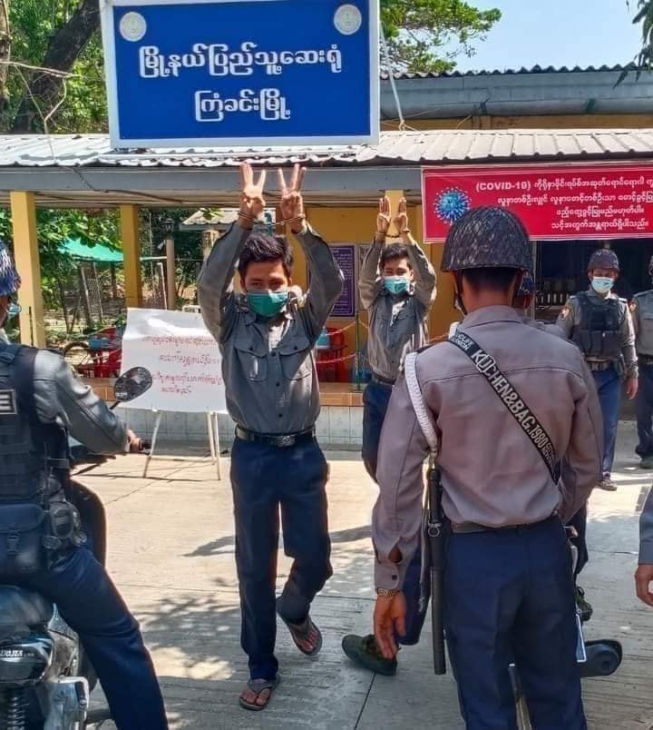 1年間の禁固刑に処されたチャンギン市中央警察署のトゥーイェインリン巡査とターヤーリン副巡査長は、軍事独裁を望んでおらず、反対であるという内容をそれぞれのSNSに投稿したため、2月3日から拘束されていた。