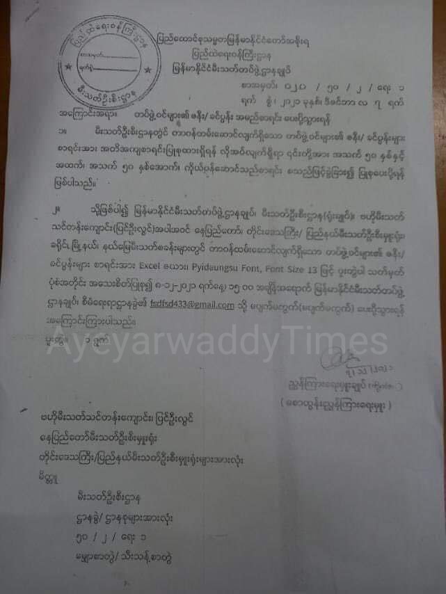 軍評議会の下にある、内務省ミャンマー消防局の消防隊員の妻を軍事訓練に参加させるため、名簿を作成し送るように消防局本部が指示していることが、消防隊員関係者によって分かった。