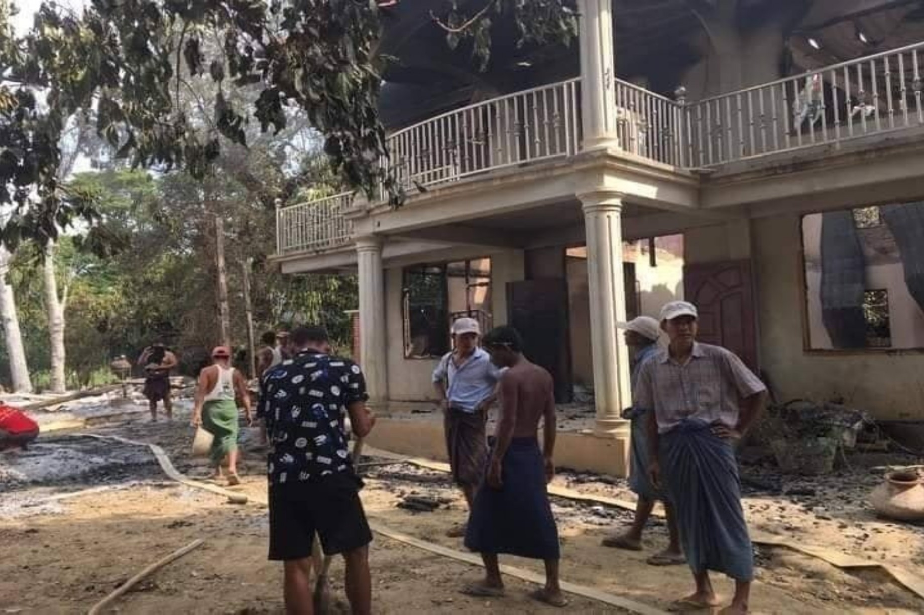 キンウー郡北部タイェッコウン村で住宅70棟以上とモスクが放火される