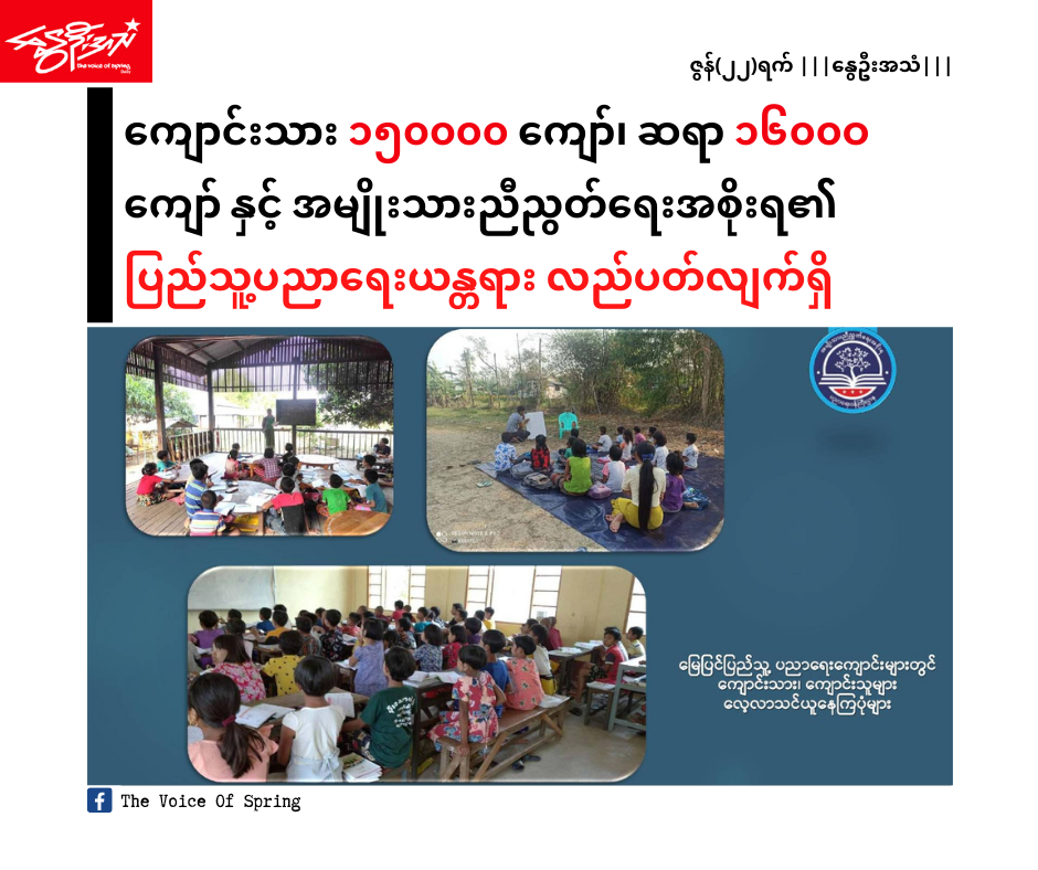 国民統一政府NUGが開設したオンラインの学校と現場で対面教育をしている学校には、生徒が151,303人、教師は16,628人おり、教育が行なわれていることがNUGの公式発表によりわかった。