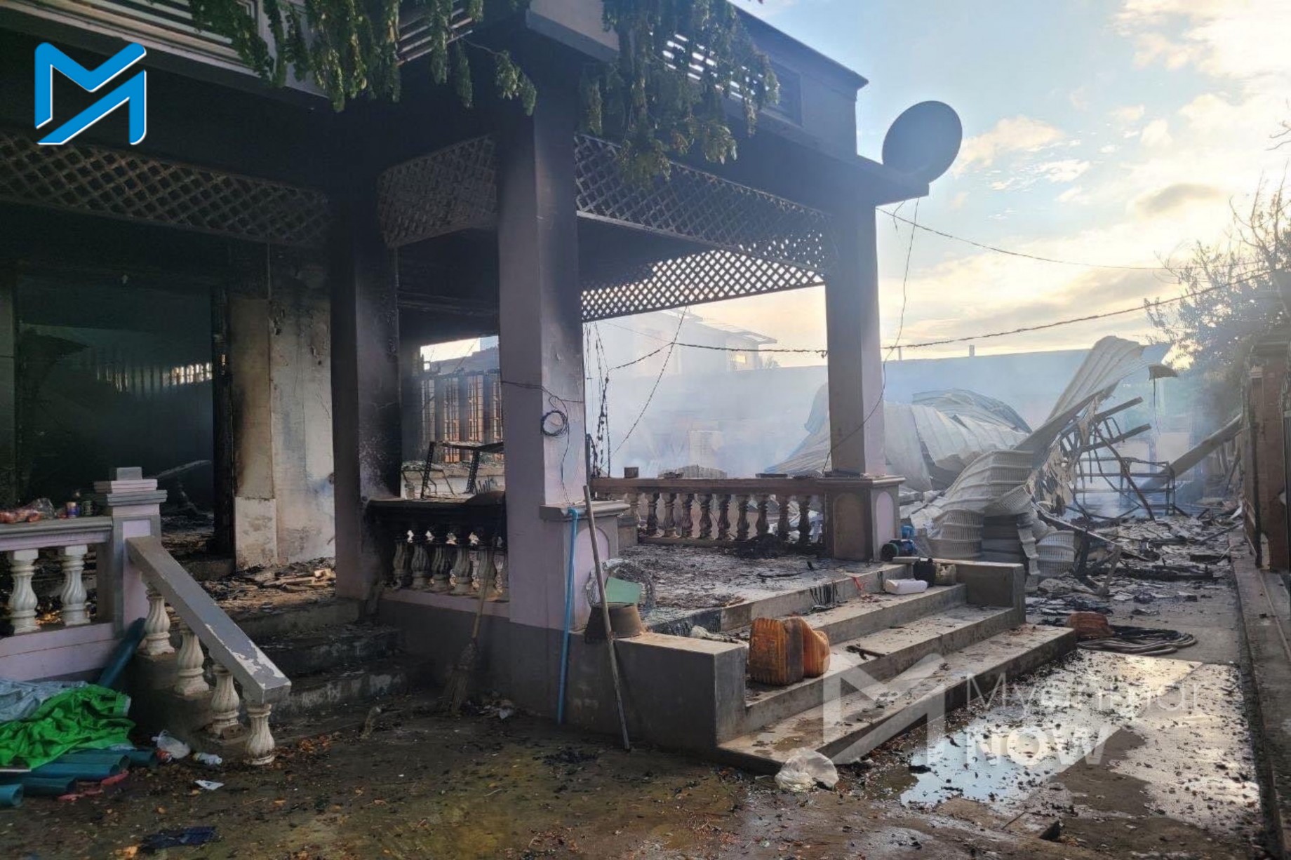 インバウンダイン村にあった、車両整備所2カ所、理髪店と揚げ物店、バイク15台も燃やされた。