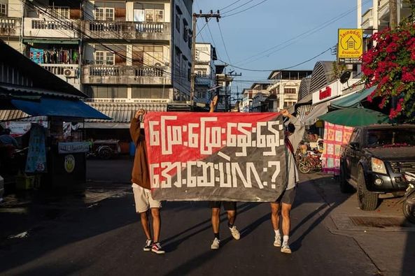 タイのメーソート市で今日11月16日に革命を支持する若者が率い、国民統一政府(NUG)の行動に対し質問を投げかけるデモがあったことがわかった。